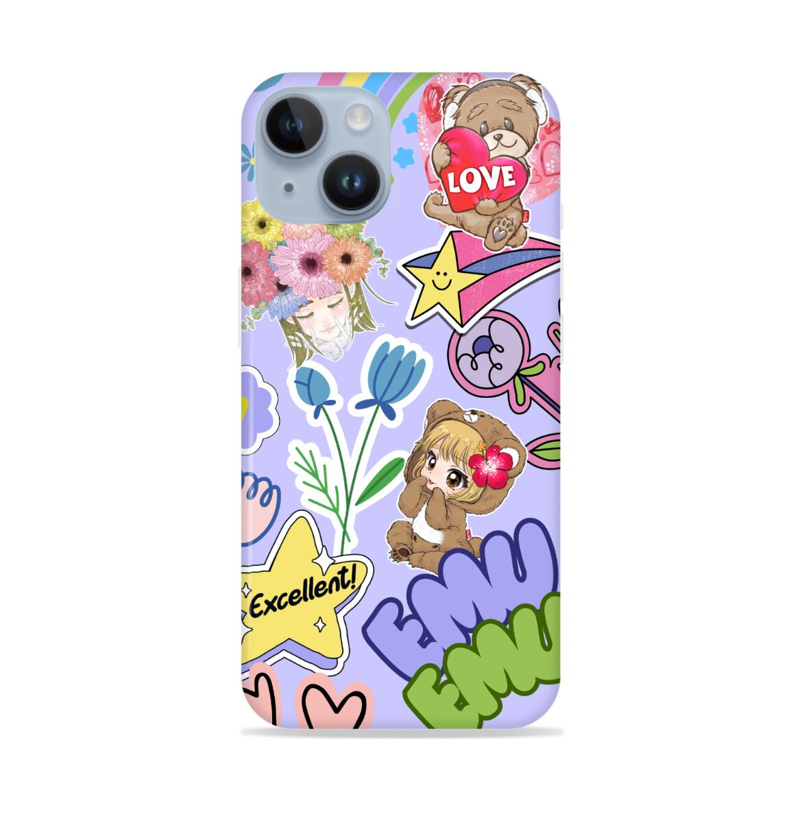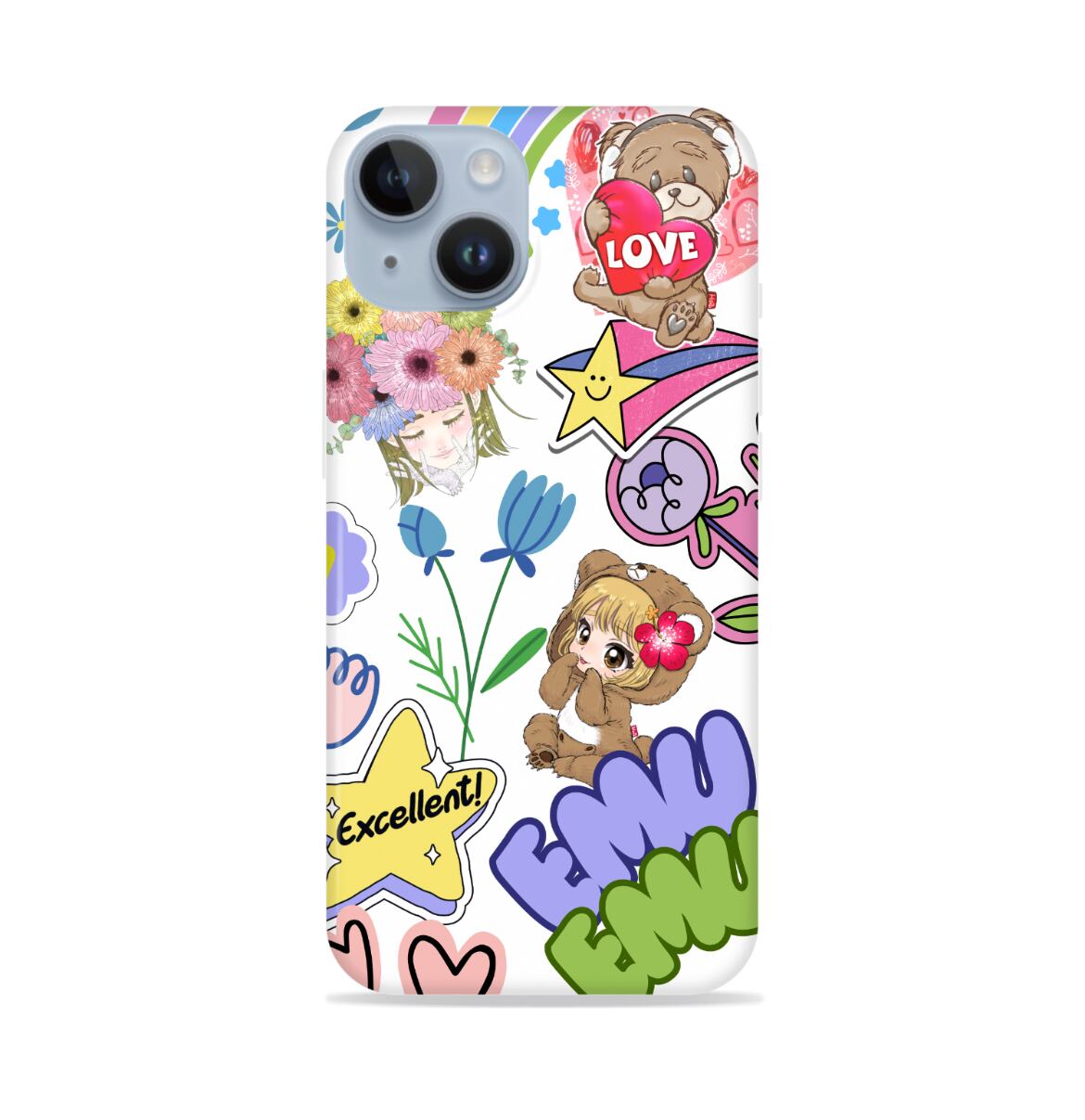 Emuオリジナルステッカーを散りばめたキュートなスマホケースです。